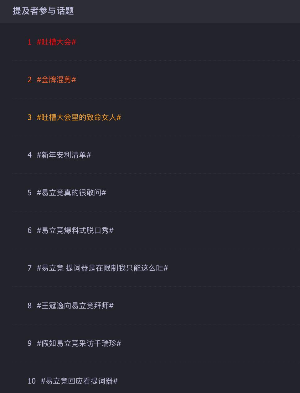 不仅杨笠凭借在吐槽大会的表现再次出圈,一次又一次上了话题热度榜,还有一位是被网友称为yyds的易立竞。