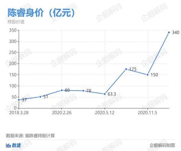 2018年3月28日,按B站上市发行价11.5美元计算,B站董事长、CEO陈睿所持股票价值近5.8亿美元(约37亿元)。2021年3月29日,按B站香港上市发行价发行价808港元(678.7人民币)计算,陈睿持股价值近340亿元。B站两次上市,陈睿身价也随B站股价的增长翻了9倍。