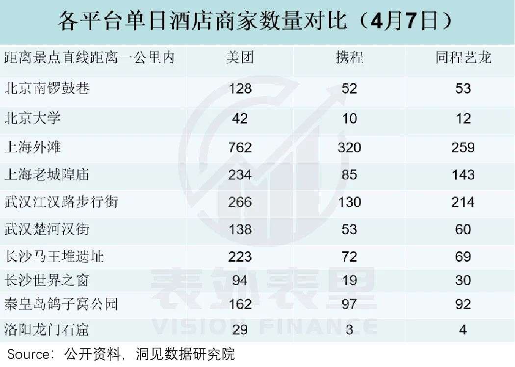 就随机调研看,美团已不管是在一二线城市还是三线城市,酒店商家数量都把持着C位。
