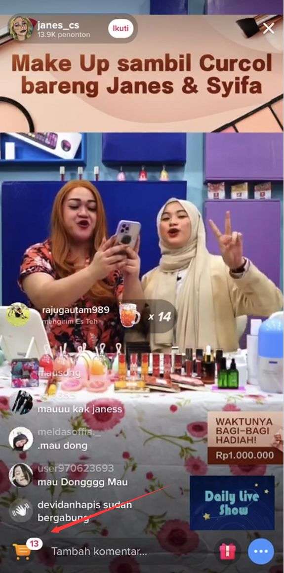 在直播间里,两位女性印尼网络名人@syifafnabilaa和@Janesè充当带货主播李佳琦的角色,“Mau Dong(买它)!Mau Dong(买它)!”的欢呼声充斥着整个直播间。