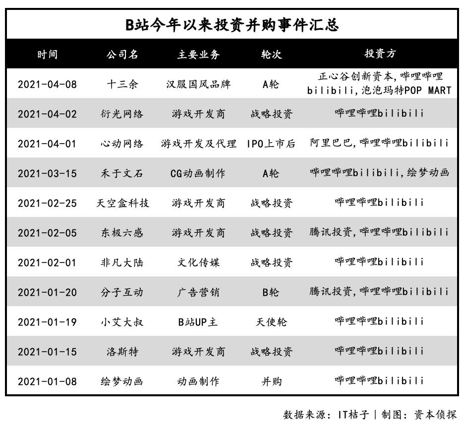 B站又出手了。4月1日,B站入股心动公司的消息引发游戏赛道内的震动,紧接着在2日、8日,B站又接连投资了游戏研发商衍光网络、汉服国风品牌十三余。