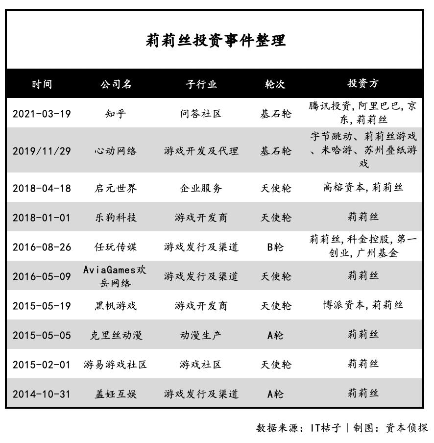 莉莉丝则主要着眼于游戏发行及渠道,其先后投资的盖娅互娱、AviaGames欢岳网络、任玩传媒都能够帮助莉莉丝面向海外市场进行游戏发行。此外莉莉丝还先后投资了游易游戏社区、心动网络、知乎等内容社区。