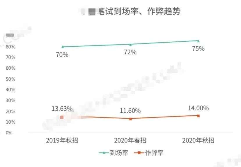 根据某笔面试题库网站发布的2020年秋招招聘数据显示,2020年秋招,该网站共计为超过120万考生提供在线笔试,作弊率为14%,也就是说,10个人中至少有1个人有作弊行为。
