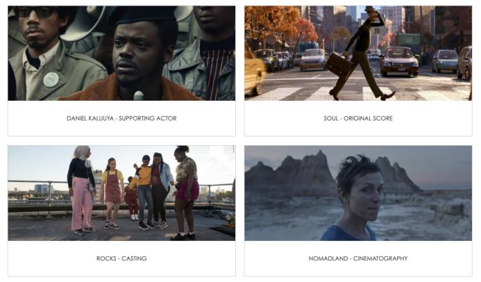 从数量上来看, 《无依之地》共获得七个提名,最终获得四项大奖,无疑是今年英奥的最大赢家; 《前程似锦的女孩》《困在时间里的父亲》《金属之声》《蓝调天后》《心灵奇旅》五部影片均分别获得两项大奖。