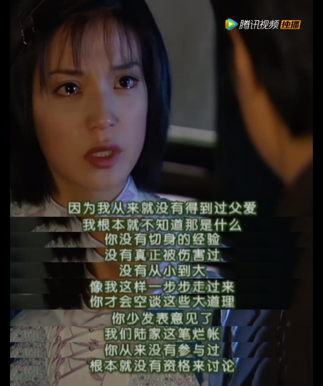 尽管琼瑶在《情》的后期笔力不济,缩减了父女线的细节铺设,令依萍的人设走向落入下成,但中后期依萍性格中缺失的那部分圆润,也暗示了应当是由陆振华的父爱弥补回来的,而非全然是爱情之功。