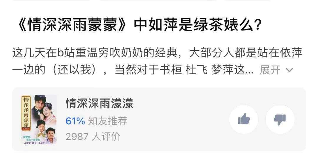 这种对老作品的标签化解读,《情深深雨濛濛》并非孤例。这种现象也暴露了一个问题: