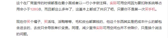 那么,岳云鹏的发问是不是没有必要?小雷并不这么认为。不管是岳云鹏,还是普通消费者,有此疑问是非常正常的。对于普通消费者而言,自己花钱购买128G、256G的存储空间,那自然希望手机能有这个规格。结果到手开机一看,剩余空间不是厂家标注的那个数字,逻辑上一下子没拐过来,自然觉得产品“缺斤短两”,自己被厂家给坑了。