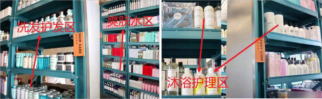 同一用途下,无论价位高低都在同一个区域,lamer 和凡士林也可以出现在同个货架上。