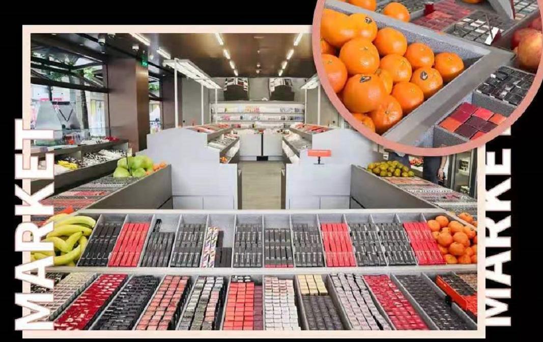 一方面,这些水果让整个店面看起来更有卖场的氛围、更加轻松;