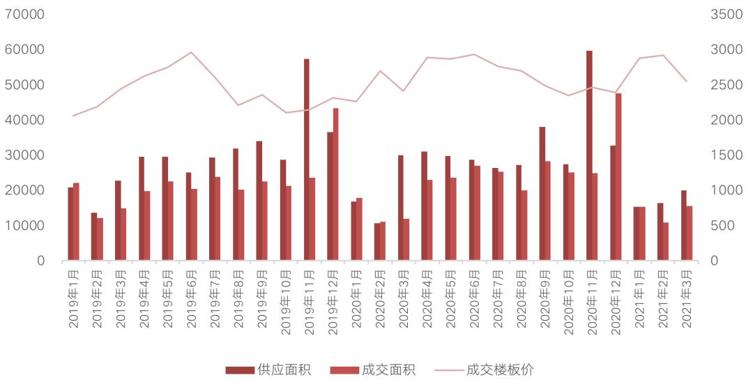值得注意的是,近期热点城市调控呈现出明显收紧的趋势,住建部多次约谈热点城市,西安、金华、湖州等城市均在近期加码了房地产市场调控,以抑制市场热度,预计4月份土地市场整体热度有望得到降温,地市过热的三线城市或将加入集中供地的行列。考虑到“两集中”政策制定的初衷是为了平抑房价,预计2021全年住宅供地规模总体上保持稳定,整体成交规模仍将稳中有升。