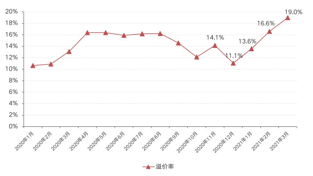 土地市场整体热度上升的影响下,土地流拍现象也进一步缓和。以重点监测的城市来看,流拍率已经连续4个月走低,3月份流拍率已降至9.1%,较2020年下半年来的最高点已经下滑了近5个百分点。