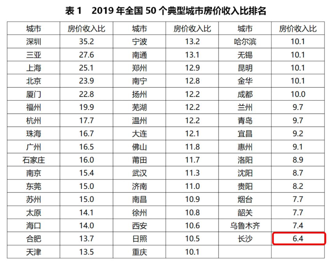 所以,长沙才能连续多年霸占中国50个城市房价收入比的最末位