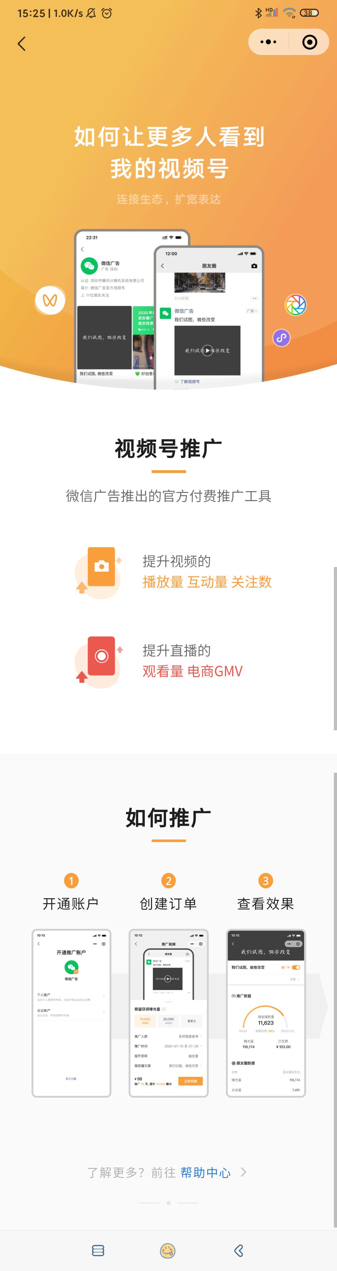 资料显示,视频号推广功能是从去年9月开始内测,今年2月正式上线。微信广告在《视频号商业产品能力介绍》写到,到今年Q2,视频号推广功能将会更加完善,届时可支持公众平台流量等。