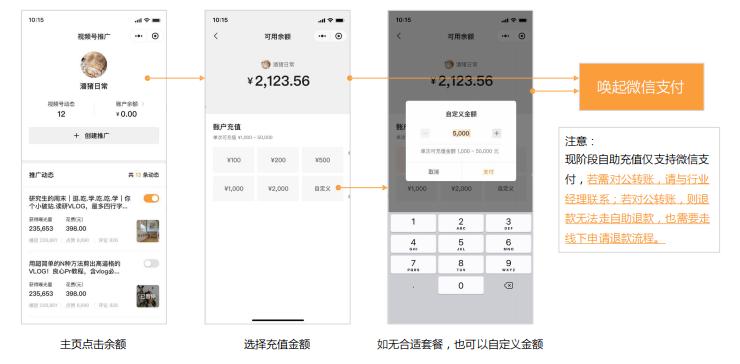 视频推广的费用上文已经提到了,《视频号商业化产品能力介绍》中显示,直播推广费用预计100元可拉新50-300人,可充值额度在100元-10万元区间。