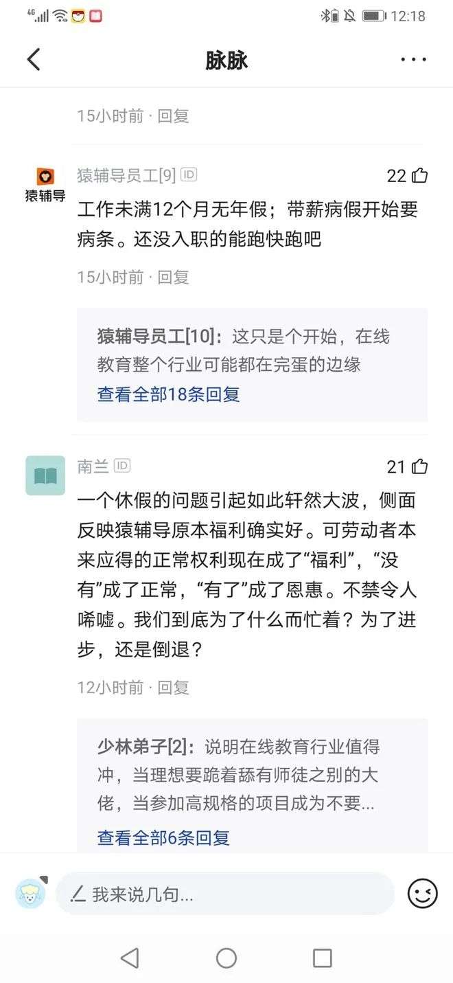与张琳类似的,脉脉上近期还出现了几则职业认证为猿辅导的员工发言,引发了很多行业内人士的共鸣。
