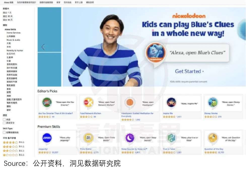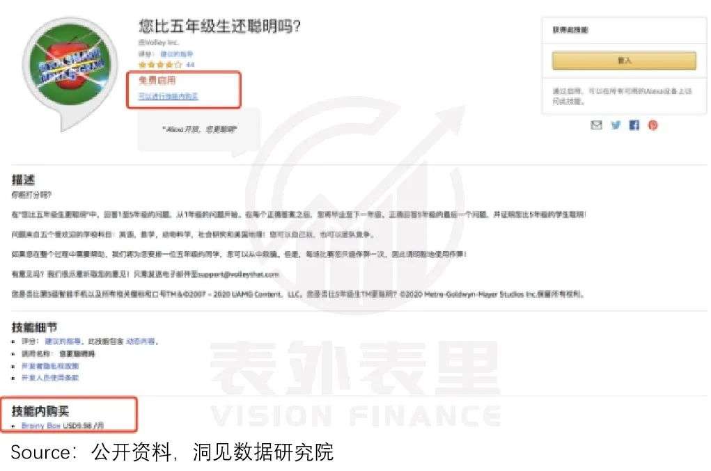 开放策略之下,亚马逊依靠开发者做出了类似于智能音箱的“安卓系统”,而系统内的“应用超市”便是其变现法宝。