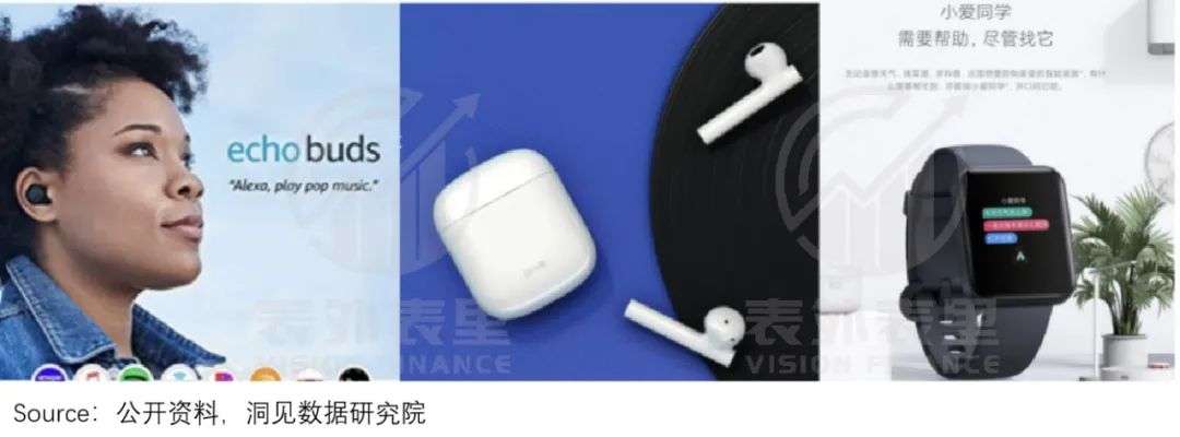 为了让用户可以在家庭场景以外的地方也能使用Alexa,亚马逊曾发布了内置Alexa的智能真无线耳机EchoBuds;国内厂商除了发布可穿戴智能设备如耳机、手表等,还有智能车载支架,延伸至车载场景。