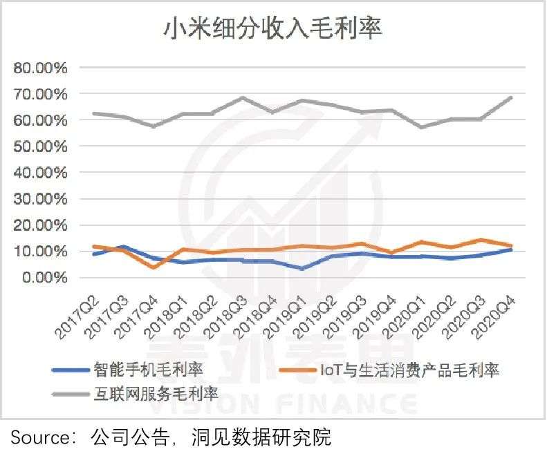 回到国内企业,小米立下的“硬件综合利润率不超过5%”Flag,让其手机和AIoT产品的硬件收益也偏向于低利。但庞大的硬件产品逐渐渗透到用户生活中后,“米粉”的价值也在其“互联网服务”业务的高毛利中有所体现。