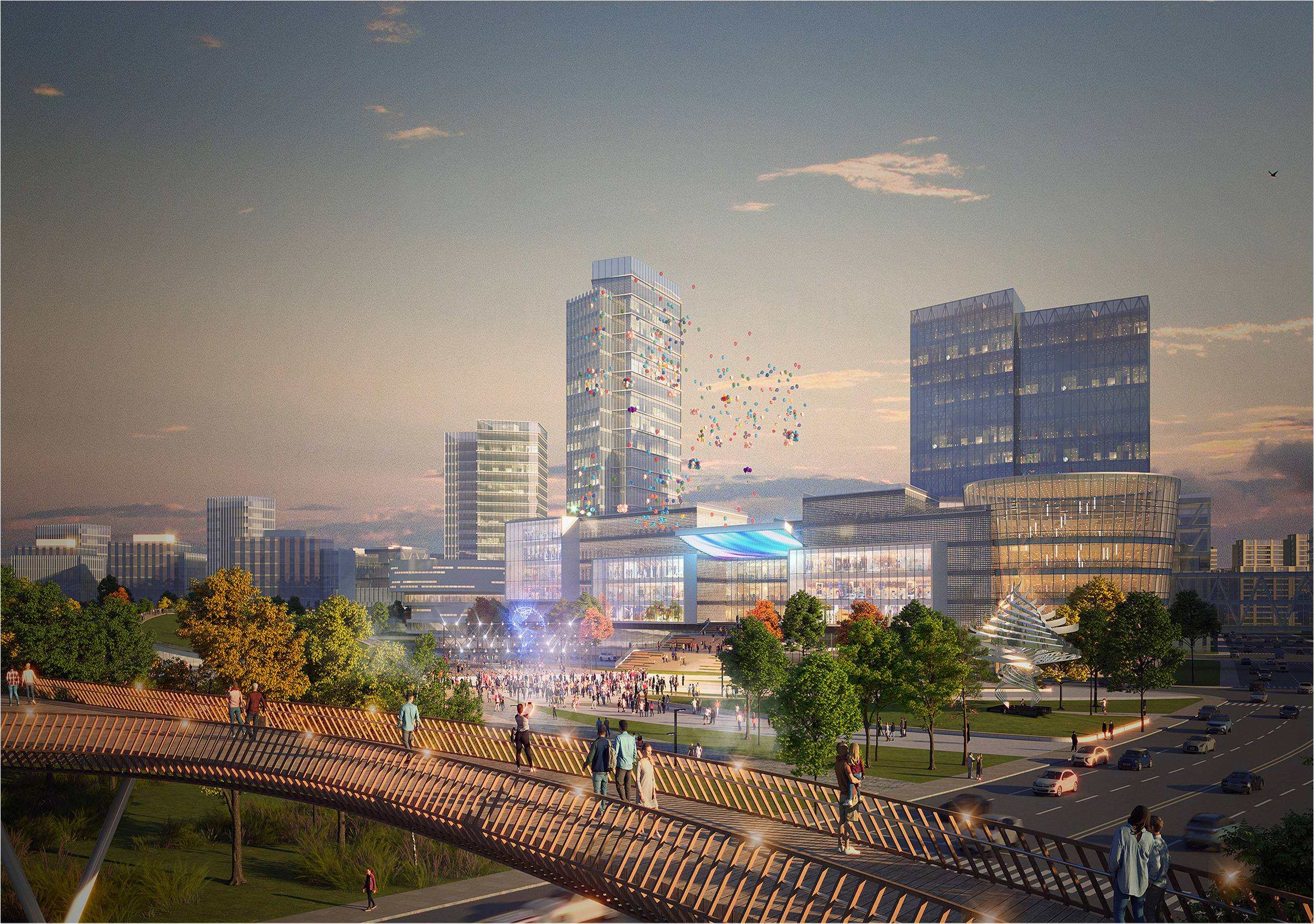 此外,建设层级扁平化、服务主题差异化的公共服务设施,规划以面向企业和面向城市2个不同主体的公服体系,打造15分钟与5分钟生活圈,打造区域创新中心,创造一个融合居住、工作、休闲、文化娱乐的城市空间环境。