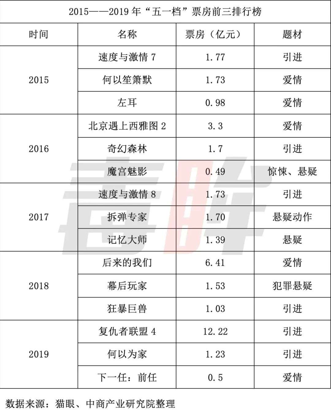 2015年以后,引进大片不再在五一档期内上映,更多定档在大盘冷淡期的3-4月,承担救市作用。即使如此,之后五一档内上映的新片,仍都受到引进片的长尾效应影响。而当国产中腰部影片遇到《速度与激情7》、《速度与激情8》和《复仇者联盟4》这类超级大片时,纵使抱团应战,也难有胜算。