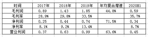 2017-2019年,公司净利润录得0.25亿、0.44亿和0.74亿元,年均复合增速达到71.47%,远高于同期营收和毛利的增速,展现出较强的获利能力。