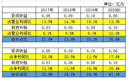但通过拆解营业利润可以看出,与主业无关的政府补贴和理财产品投资收益占营业利润的比重逐年提升,截至2020年上半年,这一比例已经超过30%。