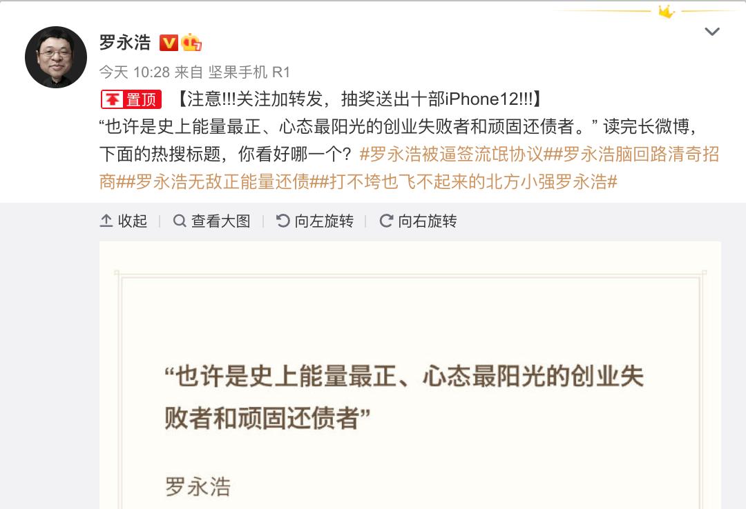 图片来源:@罗永浩截图