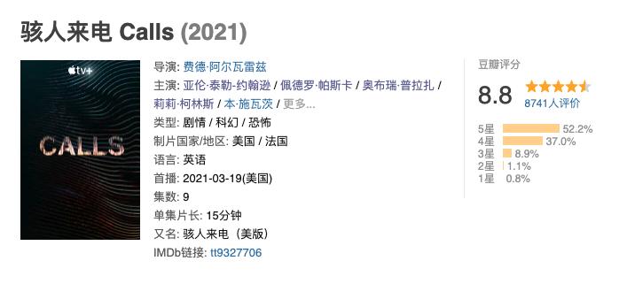 即便是最近影评人强烈推荐的骇人来电,在豆瓣上也只有 8000+ 人进行过评价。