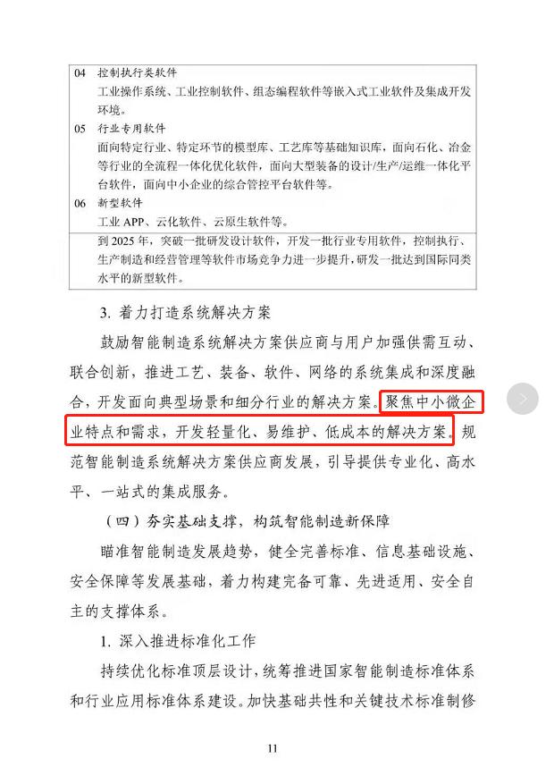 这个技术路线,也正是目前工信部倡导的方向。4月14日,工信部发布《“十四五”智能制造发展规划》(征求意见稿),其中就有一条:聚焦中小微企业特点和需求,开发轻量化、易维护、低成本的解决方案。