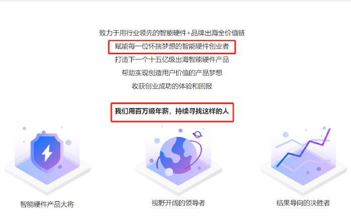 安克提出“打造最适合全球化智能硬件创业者平台”、“赋能每一位怀揣梦想的创业者”的愿景,一副“孵化”、“赋能”创业者的姿态。