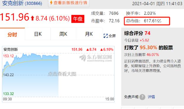即便在3月底,安克发布2020年利好财报后,市值依然在617亿左右(截止今日:671亿)。