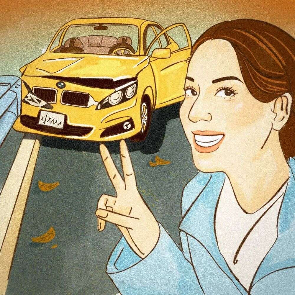 后来有一天,我开着车打算很自信地转弯,结果因为距离太近,转的圈太小,车就挂栏杆上了,一整面的车都被划了,我心疼的不行,但还是专门发了一条朋友圈,宣讲我的光荣事迹,丰富我的开车日记。