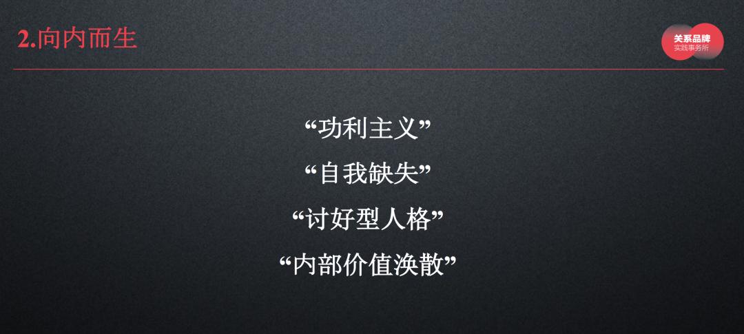 “功利主义”、“自我缺失”、“讨好型人格”“内部价值涣散”,是目前消费品品牌的四道魔咒。
