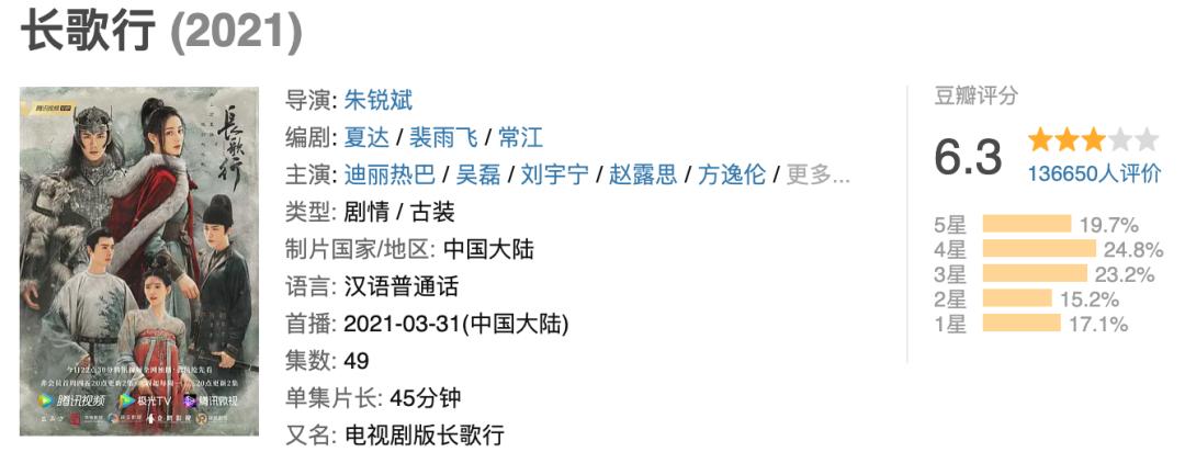 如果从评分、播放量和话题度来看,《长歌行》也还行。