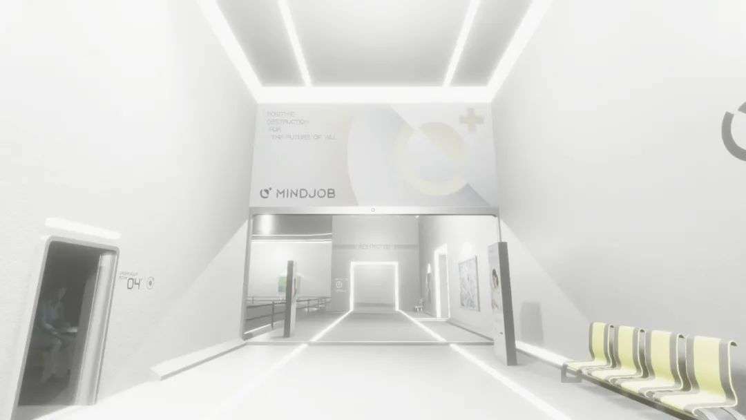 从游戏“建设性破坏”的宣传语,到MindJob公司看起来非常现实的品牌设计,多少包含了他们提到的恶作剧感。在游戏剧情中,将艺术家的脑内意识处理后植入孩子,将他们变成天才儿童的设定很新鲜,但并未在故事中特别展开。杨静解释说,这个世界观想要体现一种他们在不少人身上看到的功能主义,一种脱离体验和经验的学习方式——只注重知识、技能等实用的方面,不重视过程和感受,像是直接把内容“注射”到脑中。这个设定的灵感来源是关子维在香港街头看到的营养品广告,宣称可以为客户量身定制营养摄入,连吃饭的步骤都能省略。这背后的价值观让两人感到十分荒诞。