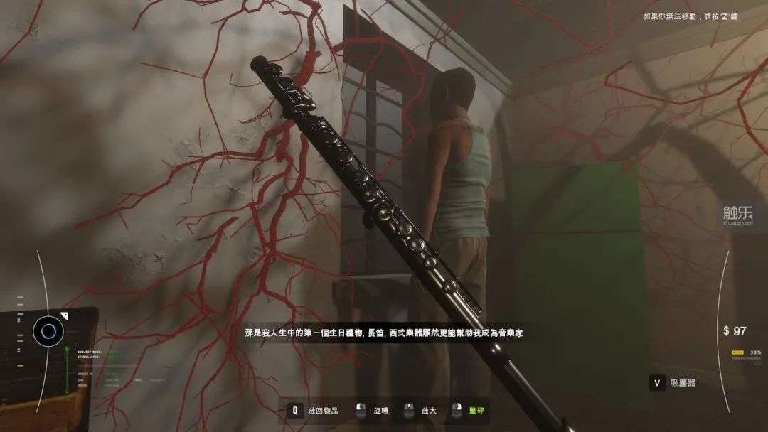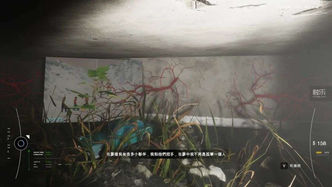 等到玩家找到一处废墟中通往地下的暗门,才算正式进入需要清理的区域。室内的风格非常写实,充满年代特征,很多东西干脆取材于真实物件。与此同时,一切又是那么错乱、紧张、荒芜,象征着大脑神经的盘根错节的红色网状物给场景更添诡异。比起真正的过往,它反映的是艺术家眼中更深层的,感知与情绪上的“真实”。