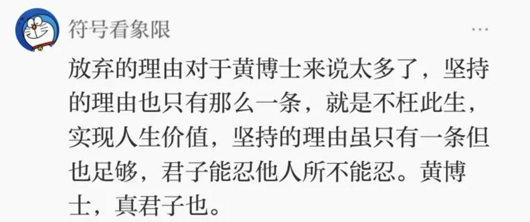 正如网友所说,“放弃的理由对于黄博士来说太多了”。但是他没有别的选择,只有一条路能够越过那座贫穷的大山,所有的努力和坚持都只是为了看见一个更宽阔的未来。
