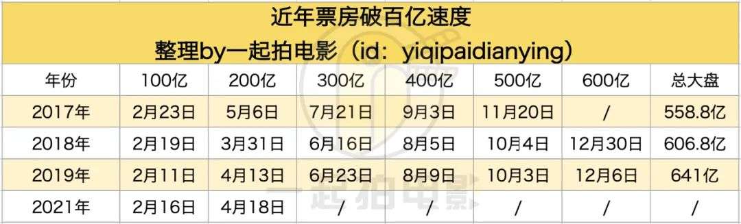 我们也总结整理了从2017年至今内地电影大盘破百亿的时间节点,从中也可以清晰的发现,这一差距在近几年都是罕见的。