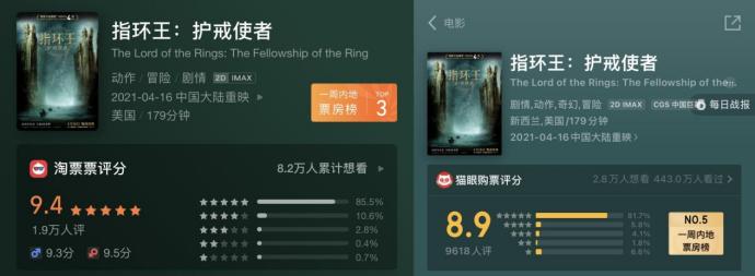 这个数据虽然算不上多好,但是在影院复工后的所有重映影片里,已经排在第六名了。而即将于本周五开画的《指环王2:双塔奇兵》随着拷贝的陆续到位,在排片率以及票房上将有望实现新的突破。