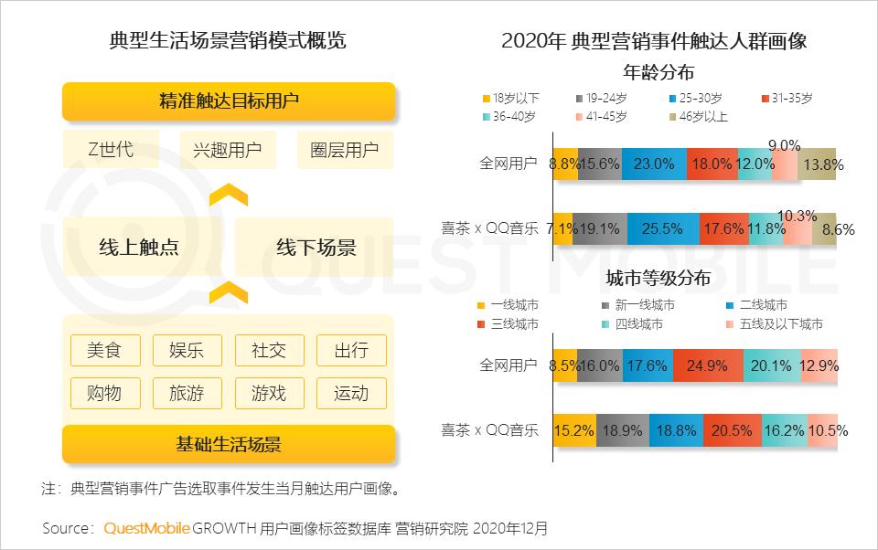 例如,喜茶与QQ音乐联合在线打造《灵感音乐公司》,触达都市青年群体比例较高。