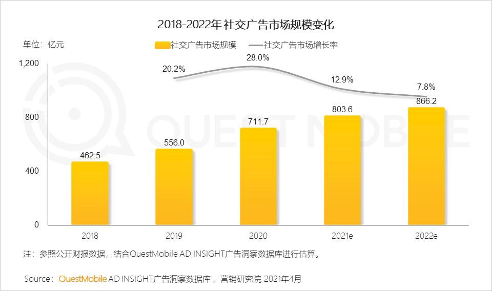 2020年社交属性平台APP广告容量较2019年变化很小,但是由于线上线下交易场景的打通和基于LBS的广告投放增加,整体广告市场规模出现了明显的增长。