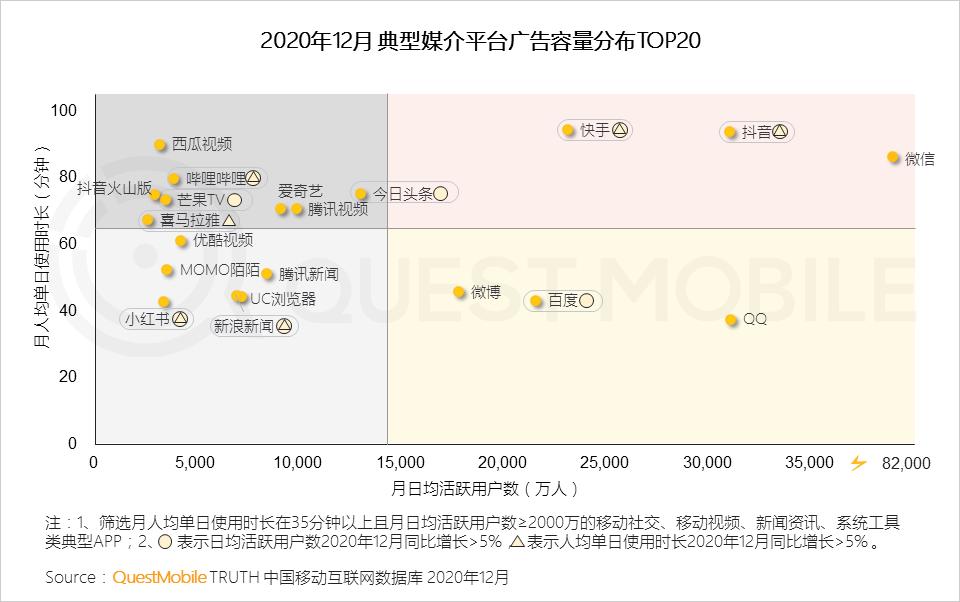 1.3 第一梯队媒介保持不变,短视频媒介容量仍持续增长;与社交属性相关的媒介明显上升,参与头部竞争