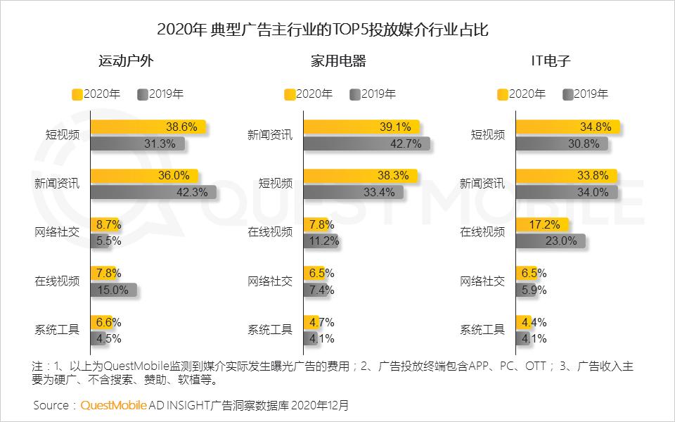 3.6 2020年TOP媒介竞争格局中最明显的变化是购买交易、短视频等媒介的广告营收进一步提升