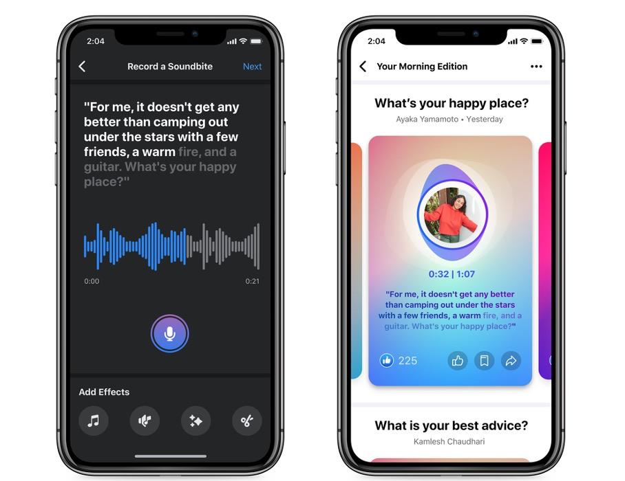 跟Tiktok的视频编辑功能类似,Facebook为Soundbites提供语音剪辑工具,用以增加背景音乐、改变音效、混合音轨等等。接下来,Facebook将和不同类型的创作者一起进行合作测试,包括喜剧演员、企业家、作家、诗人等等。