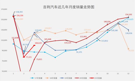 而今,又一个7年来到,进入2021年时,吉利“民营车企一哥”的宝座岌岌可危。2月,吉利从自主第一,下滑到自主第二。根据乘联会的数据,无论是批发销量还是零售销量,吉利2月份的数据都落后于长安。从批发销量来看,吉利的7.7万台明显落后于长安的10.4万台。
