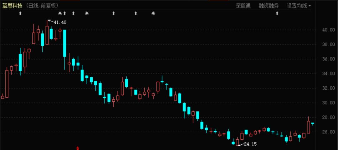 2021年1月19日-2021年3月24日,蓝思科技股价下跌40%,其中从1月底开始,出现了连续9根阴线;