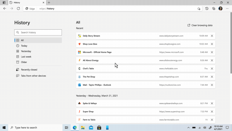 这时历史记录的搜索功能就可以派上用场了。尽管这个功能 Chrome 一直都有,但 Edge 90 这次显然做得更好:微软不仅为历史记录加入了实时关键字检索功能,同时还在搜索框下方加入了时间维度的快速筛选标签。