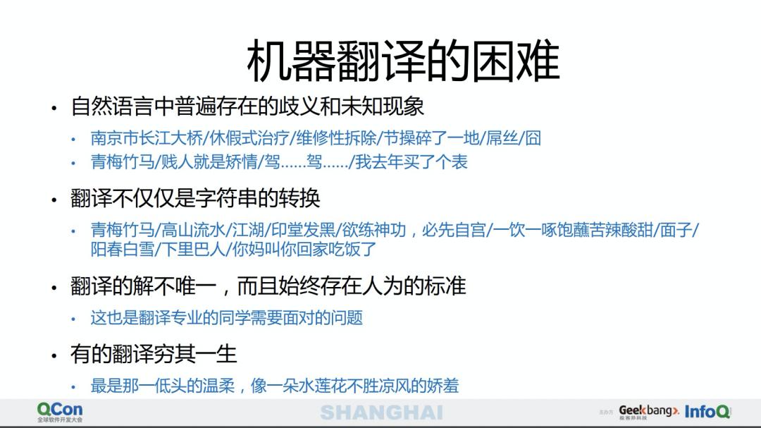 我做报告的目的,也并不一定是为了让大家听了就能够去下一套很好的机器翻译系统,而是看我们解决问题的这些思路,看是否能够为大家日常的工作当中提供一些借鉴,那样的话我就觉得很值了。