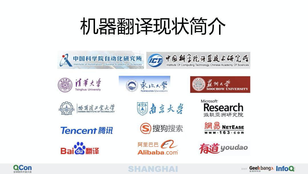 比如说在这些单位里面,中科院自动化所、中科院计算所、清华大学、东北大学、哈尔滨工业大学、南京大学等等,他们有的研究机器翻译至少都快 30 年了。