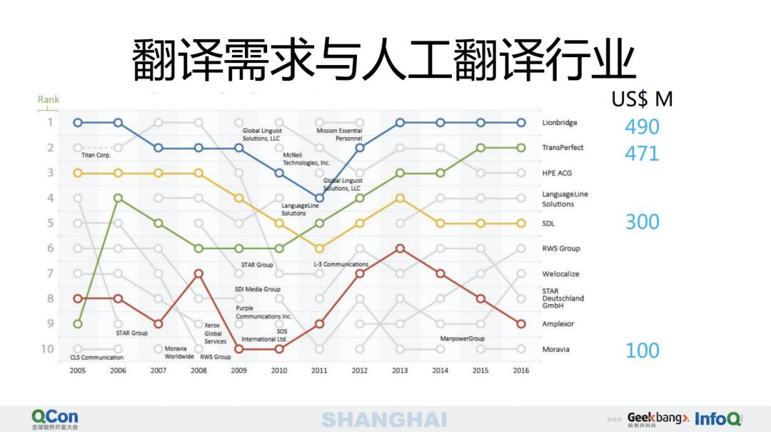 大家都总结说翻译是属于非刚需非标准化的一种服务。但是翻译又与我们无处不在,比如说我们好多时候比如说出国旅游,然后需要查一些资料,经常焦头烂额,我们去看英文的理解速度肯定是明显慢于看我们母语文本的,就是说这个时候有很多翻译需求其实不产生商业价值,但是它又很重要。我一直在想这大概是为什么这么多互联网公司愿意投入这么多人力物力来做这个事情。
